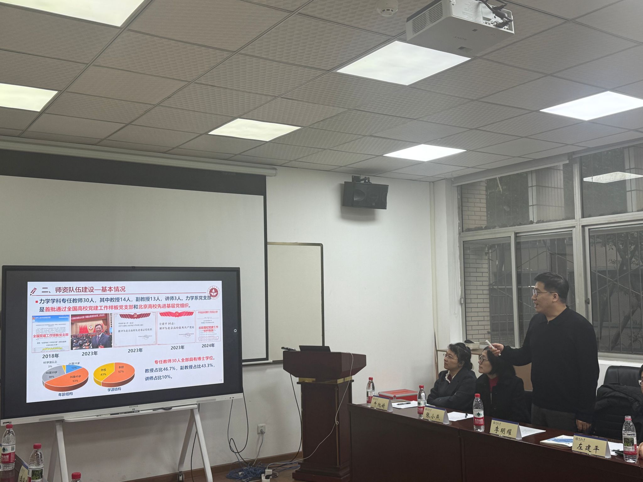 李明耀重点汇报了力学系的教学科研情况。双方围绕人才培养、人才引进、交叉学科建设、社会服务等方面内容进行了深入互动。