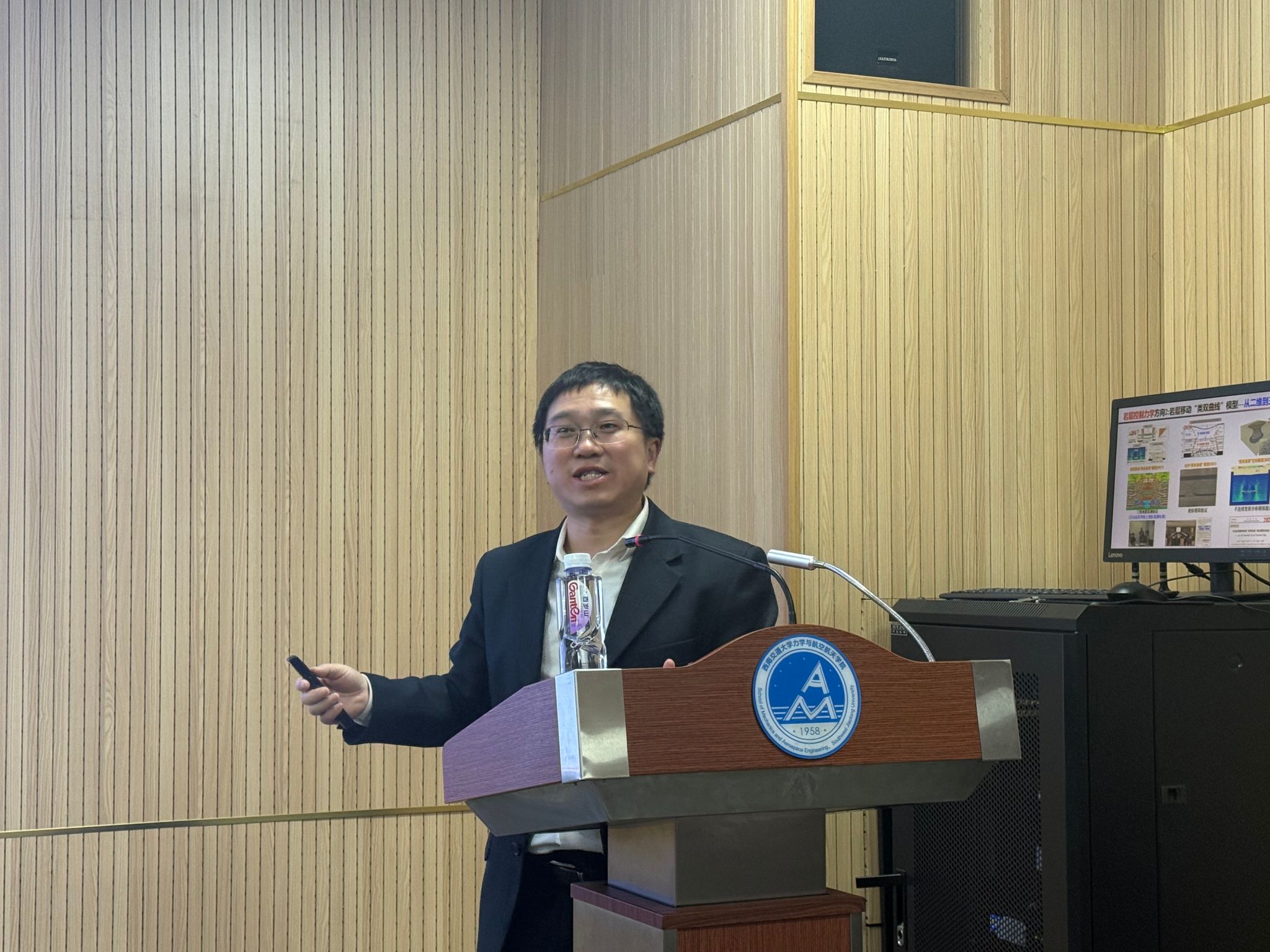 左建平教授以《基于断裂力学的岩石类脆性材料破坏准则》为题作报告分享。他结合断裂力学理论,系统阐述了岩石类材料的破坏机理与准则,提出了采矿岩层移动“类双曲线”理论模型,建立了深部巷道围岩等强支护力学模型,并介绍了团队在相关理论与工程应用方面的研究成果,引发了在场师生的热烈讨论。