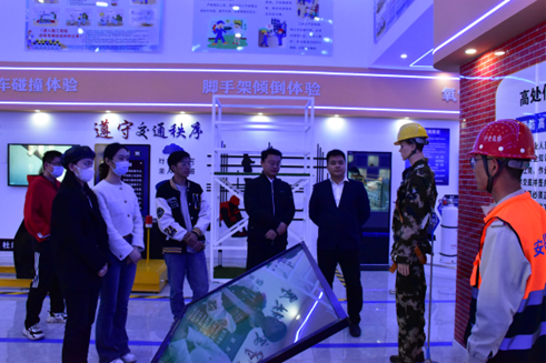 座谈会后,与会人员实地参观了项目施工现场、安全体验馆以及工人建设者之家,感受一线项目的生产建设氛围,并在实地参观过程中就自己平常所学的理论知识与施工项目对照,与在场工作人员进行交流。